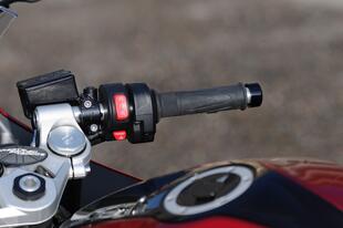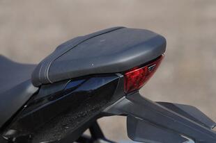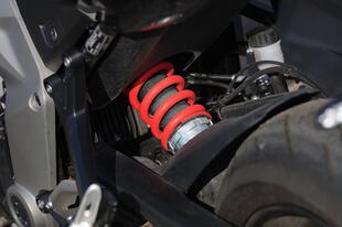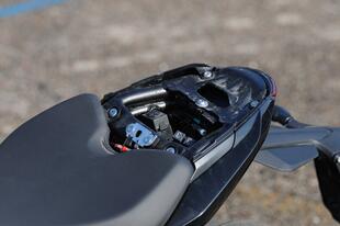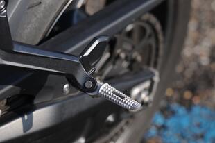 Il monoammortizzatore Showa RSU offre la regolazione del precarico molla intervenendo sulla ghiera. La forcella Showa BPF è invece priva di regolazioni. L’impianto di scarico presenta un terminale corto e quasi nascosto sotto il motore. La sua “voce” è grintosa.