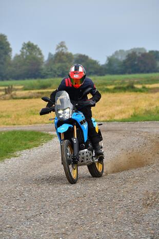 La sella alta crea qualche difficoltà a chi è sotto il metro e 80 di statura, ma il peso ben distribuito rende la moto comunque gestibile senza grosse difficoltà. Stabile e precisa, è efficace e divertente nel misto: la discesa in piega è progressiva e mai nervosa grazie al cerchio da 21", mentre l'erogazione fluida permette di dosare bene il gas e uscire forte dalle curve sfruttando la coppia vigorosa già ai bassi regimi. Bene anche la frenata, potente il giusto e sorvegliata da un ABS per nulla invasivo.