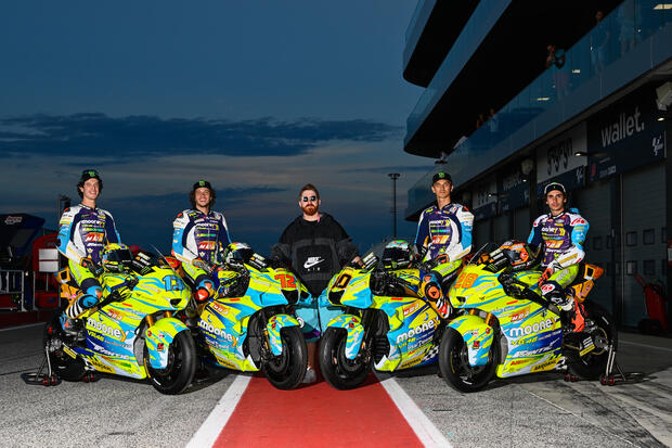 News All’asta da Sotheby's le tute originali di Marini e Bezzecchi disegnate da Mad Dog Jones Durante il Gran Premio di MotoGP a Misano di domenica 4 settembre è stata presentata una versione speciale delle livree e delle tute del team VR46 realizzate dall'artista digital di fama mondiale Mad Dog Jones. I pezzi unici, che sono stati abbinati a una collezione esclusiva di NFT dell’artista, ora verranno battuti all'asta su Sotheby's