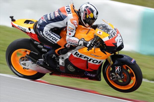 MotoGP Pedrosa domina, Rossi comincia a preoccuparsi I test di Valencia si chiudono con il miglior tempo di Dani Pedrosa che precede il compagno di squadra Casey Stoner e la Yamaha di Ben Spies. Valentino Rossi migliora rispetto a lunedì ma paga ancora 1"5 di distacco: "Il problema non è che sono sesto, ma il distacco dai primi". Prossimi test a fine gennaio in Malesia.