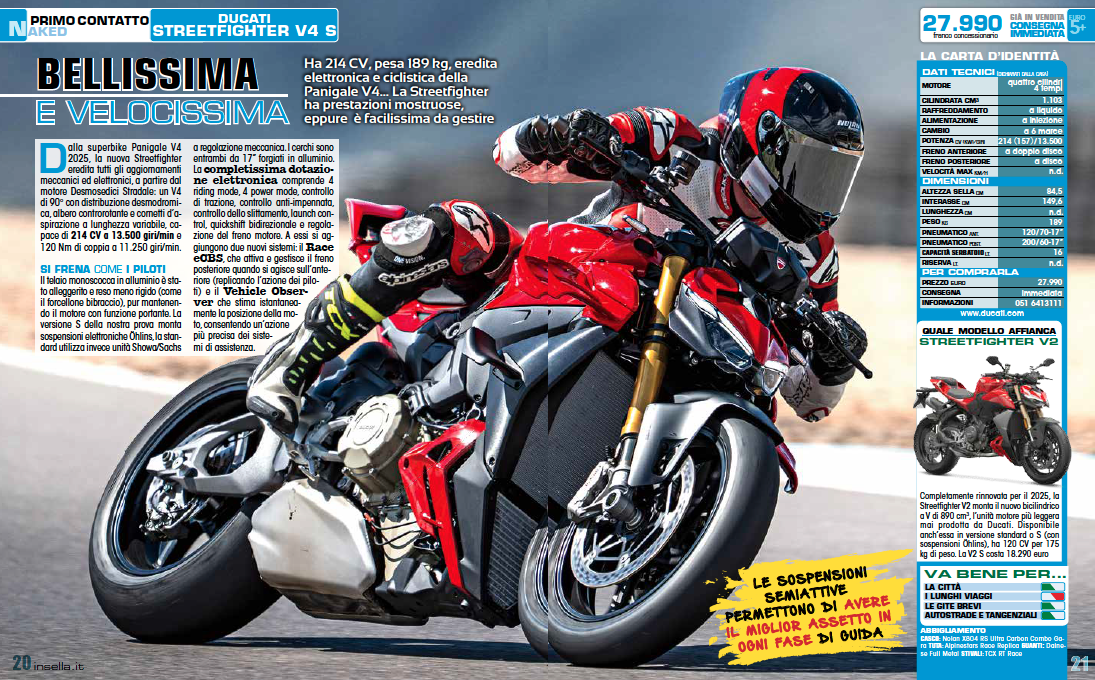 Ha 214 CV, pesa 189 kg, eredita elettronica e ciclistica della Panigale V4... La Streetfighter ha prestazioni mostruose, eppure è facilissima da gestire