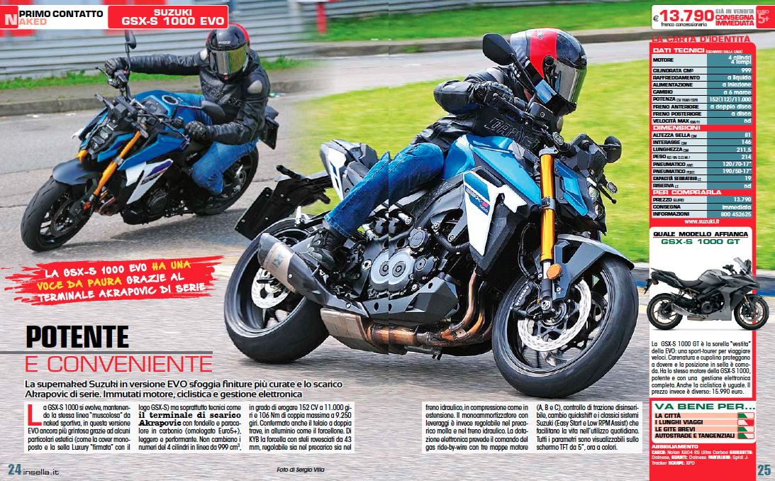 La supernaked Suzuki in versione EVO sfoggia finiture più curate e lo scarico Akrapovic di serie. Immutati motore, ciclistica e gestione elettronica