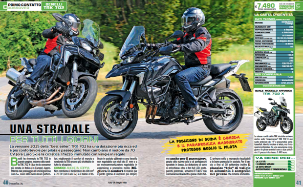 La versione 2025 della “best seller” TRK 702 ha una dotazione più ricca ed è più confortevole per pilota e passeggero. Non cambiano il motore da 70 CV (ora Euro 5+) e la ciclistica. Prezzo immutato con valigie in regalo