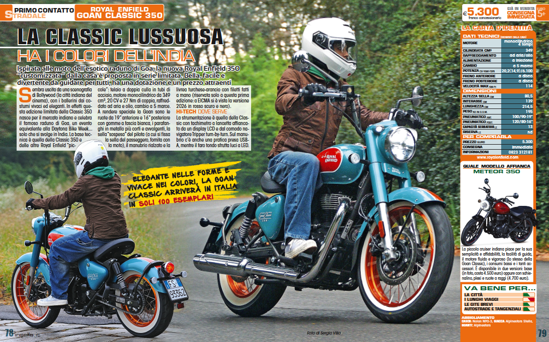 Ispirata alle moto dell’esotico raduno di Goa, la nuova Royal Enfield 350 “customizzata” dalla casa è proposta in serie limitata. Bella, facile e divertente da guidare per tutti, ha una dotazione e un prezzo attraenti