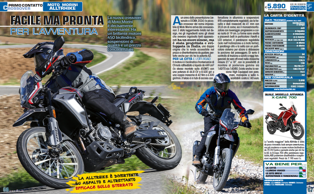La nuova crossover di Moto Morini è decisamente interessante. Ha un brillante motore 450 bicilindrico, sospensioni di qualità e un prezzo concorrenziale