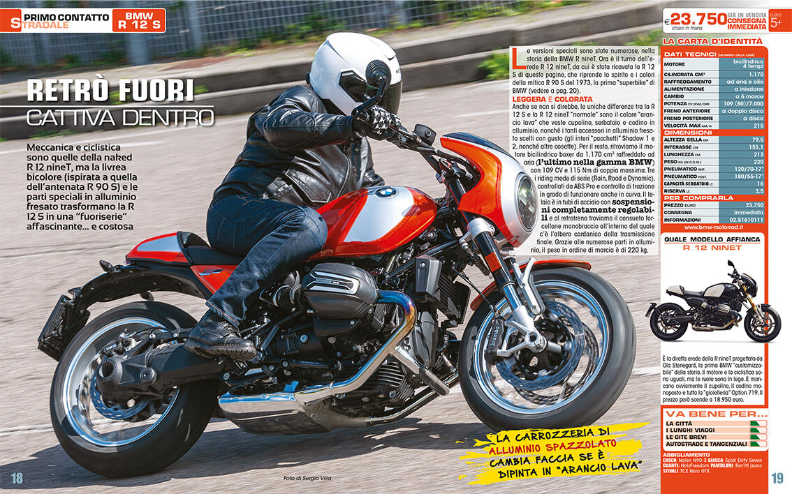 Meccanica e ciclistica sono quelle della naked R 12 nineT, ma la livrea bicolore (ispirata a quella dell’antenata R 90 S) e le parti speciali in alluminio fresato trasformano la R 12 S in una “fuoriserie” affascinante... e costosa