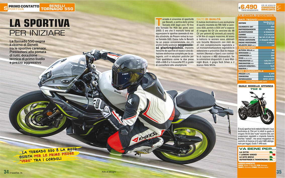 La Tornado 550 segna il ritorno di Benelli tra le sportive carenate. Prestazioni alla portata di tutti, dotazione tecnica di primo livello e prezzo aggressivo