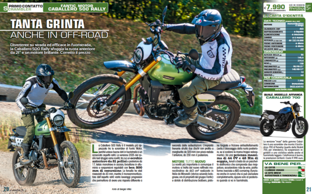Divertente su strada ed efficace in fuoristrada, la Caballero 500 Rally sfoggia la ruota anteriore da 21” e un motore brillante. Corretto il prezzo