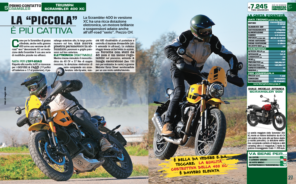 La Scrambler 400 in versione XC ha una ricca dotazione elettronica, un motore brillante e sospensioni adatte anche all’off-road “serio”. Prezzo OK
