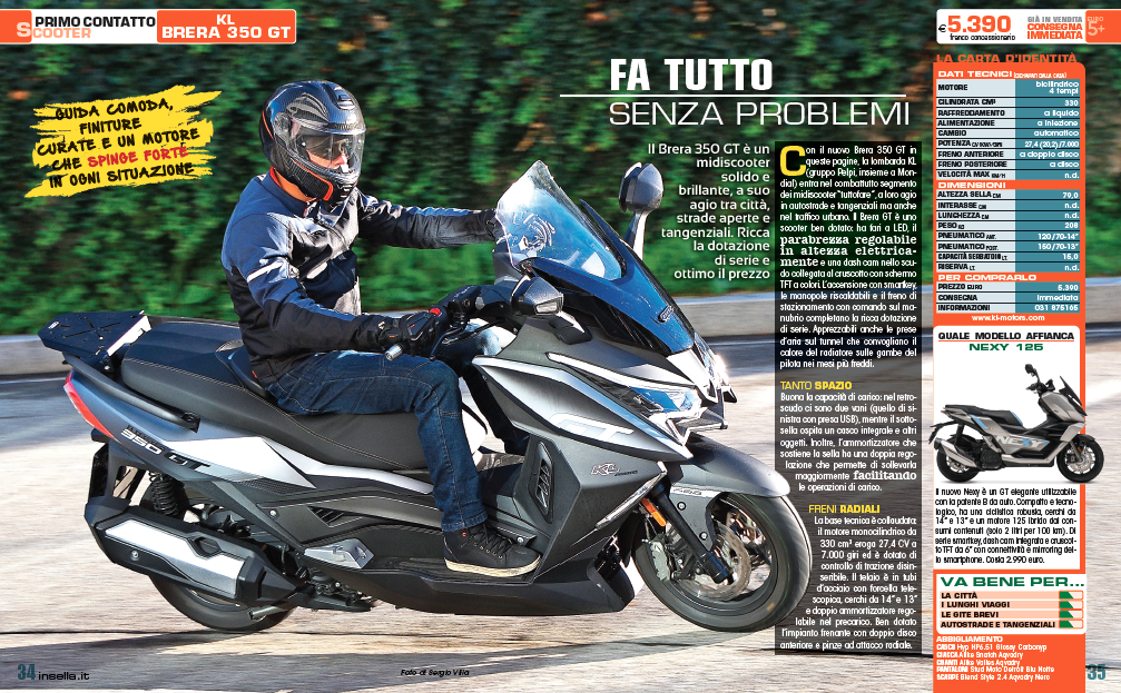 Il Brera 350 GT è un midiscooter solido e brillante, a suo agio tra città, strade aperte e tangenziali. Ricca la dotazione di serie e ottimo il prezzo