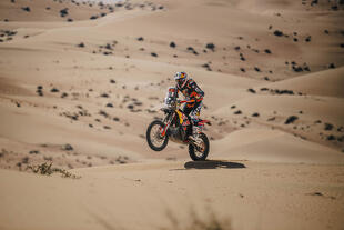 Non è il ruggito del topo, il sudafricano fa sul serio e c’è ancora lui in testa al km 82, l’ultimo posto di controllo prima del traguardo finale di questa tappa molto breve. È in lotta con Gonçalves che ha ridotto il suo distacco da 1’02” a 43”. Entrambi puntano alla loro prima vittoria in una tappa della Dakar ma Sanders non se ne preoccupa, per lui quello che conta è la classifica assoluta: l’australiano passa con 12“ su Brabec, ma soprattutto con 1’42” su Schareina, il suo più diretto inseguitore nella classifica generale, e poi Howes a 2’00” e Cornejo a 2’41”; Van Beveren, terzo nella classifica generale, è a 2’42” e Benavides a 4’17” effettivi, cioè già tenuto conto degli abbuoni. Quelli che avrebbero bisogno di recuperare stanno perdendo il terreno e il capoclassifica rende sempre più solida la sua posizione.