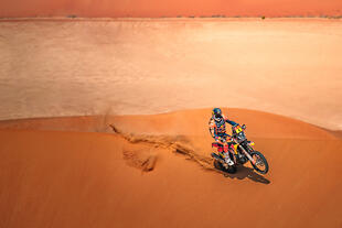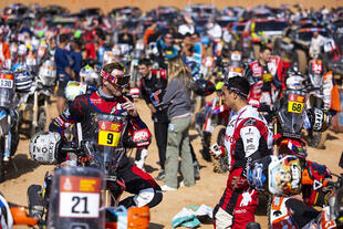 Avendo vinto la tappa di ieri Michael Docherty è il primo a partire e non si preoccupa del fatto che questo sia uno svantaggio: come dice lui, non ha niente da perdere. La gara vera è un’altra, quella tra Sanders, che parte per settimo, Schareina che parte 12º e 12 minuti dopo di lui, e Van Beveren il quale è il 16º a prendere l’avvio, 16 minuti dopo Sanders. Se i due del team Monster Honda riuscissero a raggiungerlo e a terminare con lui forse la situazione si potrebbe riaprire, ma l’uomo della Red Bull KTM è quello che finora ha vinto cinque tappe, più di chiunque altro…