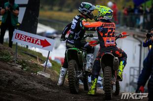 La tensione nel paddock di Pietramurata si taglia col coltello perché oggi ci sono in palio due titoli mondiali, sia quello MXGP che quello MX2. Un gran finale per una stagione massacrante, che ha visto primeggiare con settantatre punti in più Tim Gajser sul nostro Cairoli, che nostante l'età è comunque sempre secondo, tiene stretta la posizione perché dietro lui a diciotto lunghezze c'è Seewer, che questa mattina è stato il più veloce in pista.
