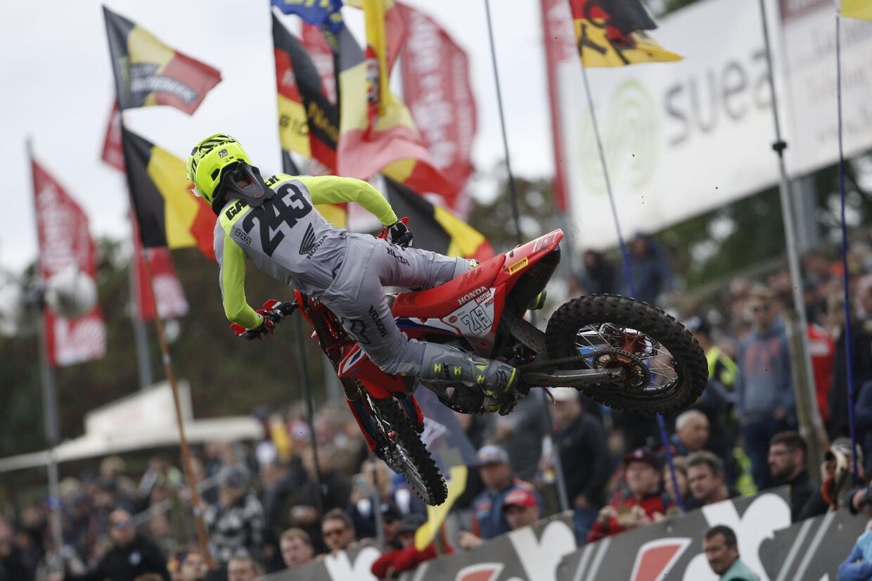Holeshot di Jorge Prado in gara1, che dopo poco lascia spazio a Herlings, poi lo recupera, lo ripassa, domina fino all'ultimo metro resistendo alla pressione dell'olandese volante, che ci prova fino alla fine. Nel Salto dell'arrivo infatti,dopo la bandiera a scacchi, Herlings è troppo a destra in salto e causa un contatto, cadono entrambi, ad avere la peggio è Prado che esce in barella e non parte per la seconda manche.