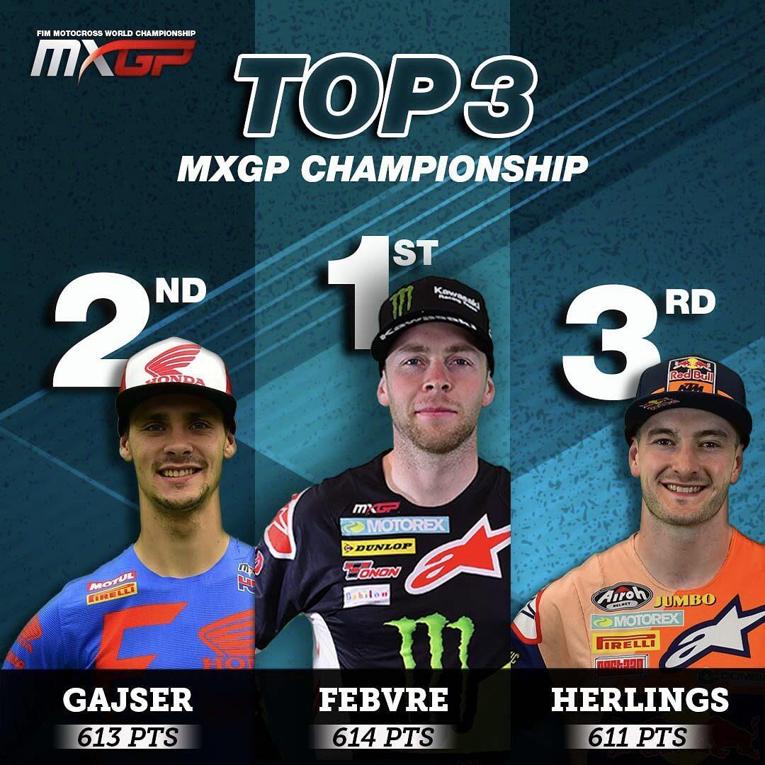 In MXGP la lotta è decisamente serrata: Febvre con 614 punti,poi c'è Gajser con 613 e Herlings con 611: la tensione si taglierà con il coltello.