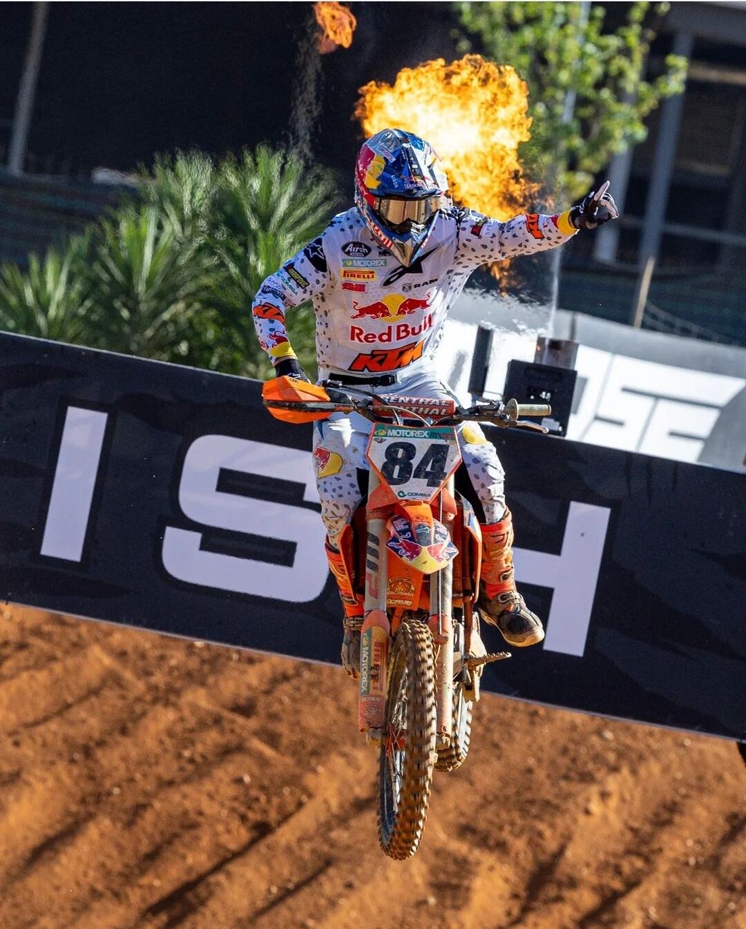 Jeremy Seewer è l’autore dell’holeshot nella prima manche della MXGP, resiste al comando per una manciata di passaggi, ma poi in pochi minuti si trova in quinta posizione ed in fine, allo scadere del tempo cronometrato, superato da Fernandez, Forato e Vlaanderen, termina ottavo. Ottima prestazione del nostro Mattia Guadagnini che ha saputo ben amministrarsi: partito secondo, ha mantenuto il contatto visivo con lo svizzero e, appena ha potuto lo ha superato, passando al comando, ha tenuto testa ai continui attacchi di Herlings per una decina di minuti, quando poi l’olandese lo ha superato e, solo negli ultimi passaggi, è stato superato anche dal compagno di squadra Jorge Prado. Alle sue spalle Coldenhoff. Anche nella seconda manche è di nuovo Jeremy Seewer a mettere a segno L’holeshot, ma viene immediatamente superato da Fernandez prima e da Guadagnini poco dopo. Il tempo di prendere le giuste misure e “the Bullet” fa il suo “solito” switch a cui ci ha abituati: cambio passo, va all’attacco e supera Seewer, qualche giro, accorcia le distanze da Guadagnini, i due danno vita ad un divertente duello, ma alla fine nulla può il nostro Mattia e l’olandese guarda già al suo prossimo obiettivo, Fernandez, che fa suo in pochi secondi e prende il comando della gara, andando a vincerla e diventando il pilota con più GP vinti nel mondiale motocross: 102. Chiude la top five il leader di classifica Jorge Prado.