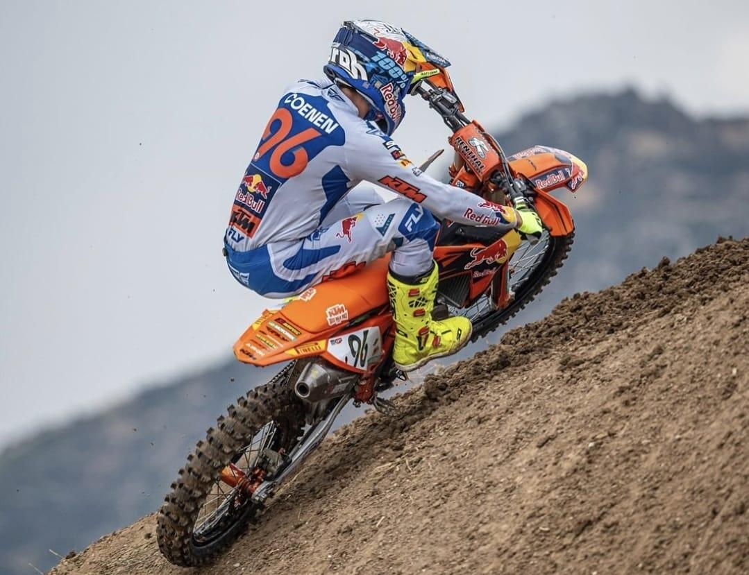 Parte bene Lucas Coenen nella classe regina che centra l’holeshot e prende immediatamente il comando, cercando di distaccarsi da subito da resto del gruppo. Alle sue spalle un sorprendente Mattia Guadagnini, insegue il belga. Un po’ più attardato Romain Febvre, leader della classifica, sa che deve gestire al meglio il suo margine di 47 lunghezze su Coenen, ma non concede nulla e, partito da subito all’attacco, recupera una manciata di posizioni, andando ad occupare la terza, già al primo passaggio. Non contento, mette nel suo mirino Guadagnini e in 3 giri fa suo il secondo posto. Il gap recuperato da Coenen, a questo punto, lo metterebbe solo che in affanno e decide quindi di tirare i remi in barca e stazionare lì dove si trova.