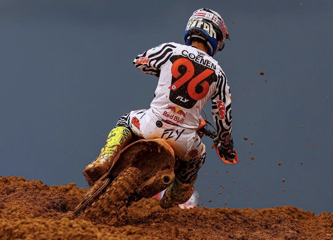 Anche nella seconda manche è Lucas Coenen ad aggiudicarsi l’holeshot, ma questa volta sono pochi i millimetri che lo dividono dalla ruota anteriore di Romain Febvre. Il francese rimane costantemente francobollato alle spalle di Coenen, per l’intera manche, cambia passo verso metà gara, ma il belga non gli concede spazi e, nonostante la pioggia torni a cadere incessante negli ultimi giri, peggiorando ulteriormente le condizioni del tracciato e aumentando le difficoltà di guida, l’alfiere della casa austriaca vince. Alle loro spalle Ruben Fernandez si aggiudica la terza piazza, seguito da Vlaandere e un buon Bonacorsi a sigillo della top-five. Ancora in difficoltà Jeffrey Herlings che patisce, oltre alle condizioni del tracciato, anche l’incidente occorsogli ieri nelle qualifiche, così chiude settimo, alle spalle di Coldenhoff. Qualche sbavatura di troppo per le Demo 450 di Guadagnini e Seewer e non riescono ad andare oltre la decima e undicesima piazza.