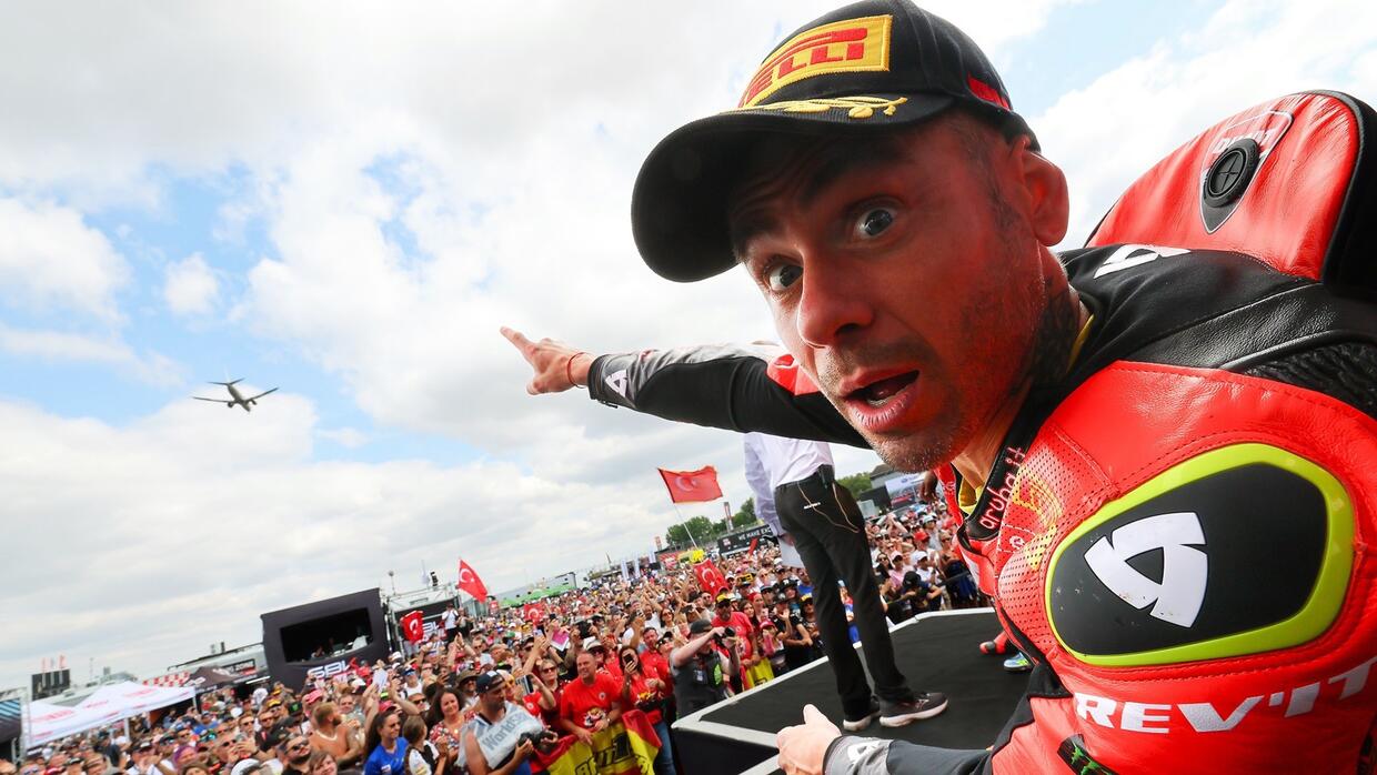Alvaro Bautista ha due bellissimi occhi azzurri che questa volta brillano più del solito. Il weekend del round Gran Bretagna Superbike era cominciato di traverso, invece è finito alla grande e sarebbe potuto finire ancora meglio. L’11º tempo nel combinato delle prove libere e il 10º tempo in Superpole non sono prestazioni degne di un tre volte campione del mondo in sella a una Ducati ufficiale; in Gara 1 era andata ancora peggio a causa del siluramento di Yari Montella che aveva tirato giù lui e Sam Lowes. Invece la domenica è tornato a splendere il sole nel box dello spagnolo. Prima il quarto posto nella Superpole Race che gli ha permesso di partire con i primi in Gara 2 e pèoi finalmente il podio, terzo sotto la bandiera a scacchi. Ci voleva proprio.
