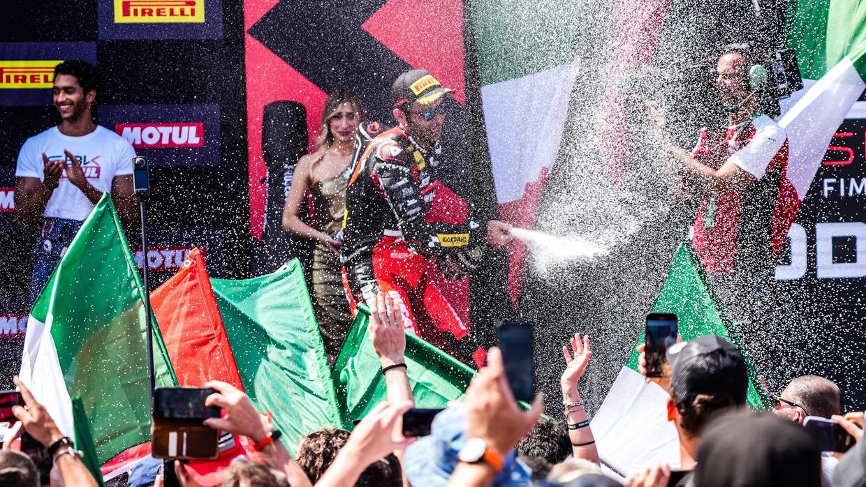 Danilo Petrucci ce l’ha fatta, è salito un’altra volta sul podio. Il terzo posto conquistato in Gara 1 del round Emilia-Romagna, sesta prova del mondiale Superbike, è il quarto di fila. Il ternano sembra essere abbonato ed è una gran cosa perché con la Ducati privata del team Barni si è messo dietro una montagna di moto ufficiali. Del resto è il privato più veloce del mondo in carica, il pilota che lo scorso anno ha vinto la classifica “indipendenti”.