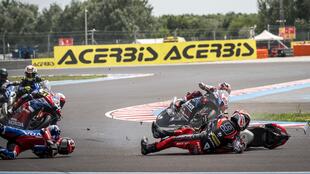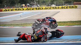 La gara era appena iniziata e il gruppo dei piloti era compatto. Davanti a loro Locatelli (55), Razgatlıoğlu (1), Sam Lowes (14), Bulega (11) e Bautista (19) non si sono accorti di niente ma dietro è successo di tutto e nel groviglio sono rimasti a terra sette piloti: oltre ai tre già citati, Yari Montella (5), Ryan Vickers (17), Remy Gardner (87) e Garrett Gerloff (31).
