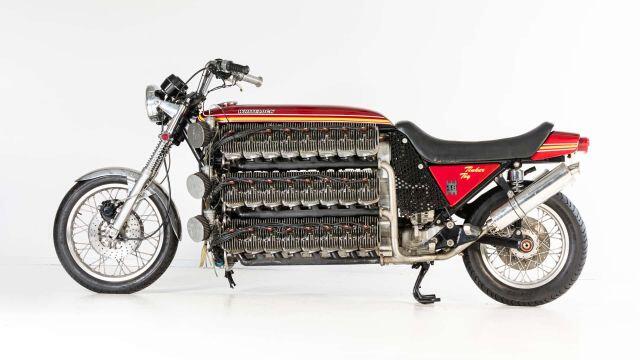 Va all'incanto questo esemplare unico costruito nel 2003 a Londra da Simon Whitelock per stabilire un primato regolarmente iscritto nel Guinness World Book of Records: è la moto col maggior numero di cilindri (48) mai costruita!